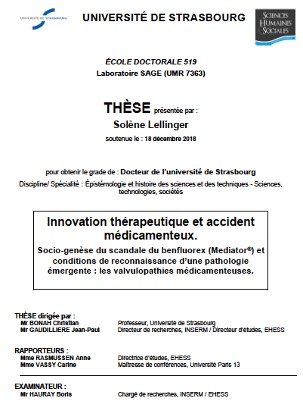 La thèse a été soutenue le 18 décembre 2018. Elle a été rédigée sous la direction de Christian Bonah (SAGE UMR 7363) et Jean-Paul Gaudillière (CERMES3).